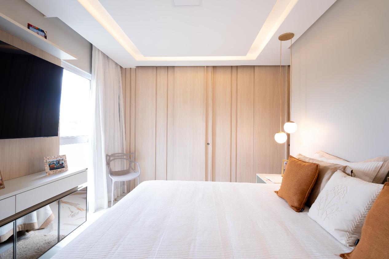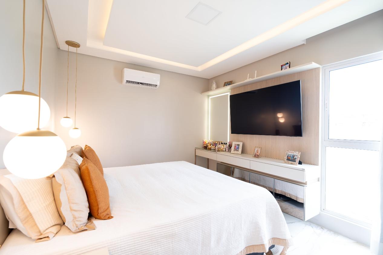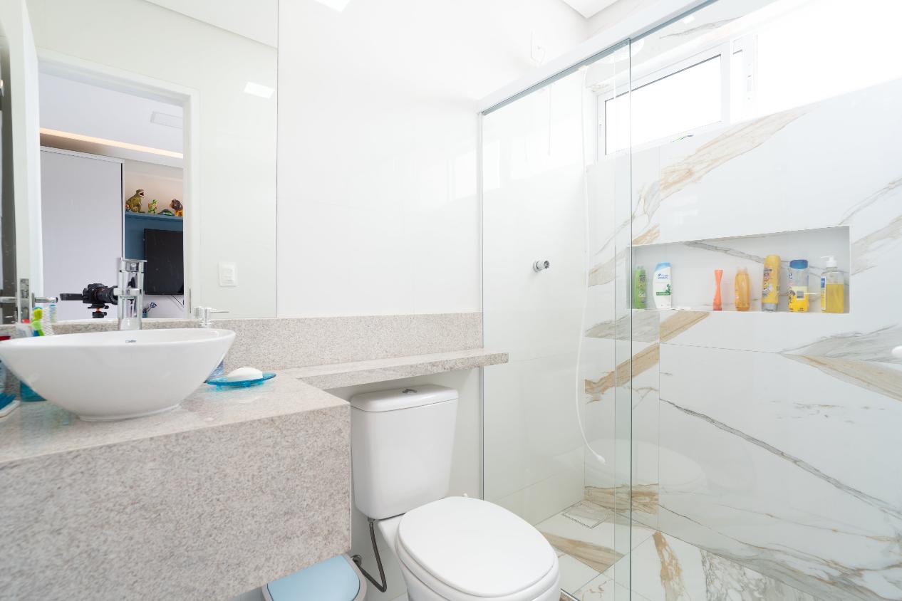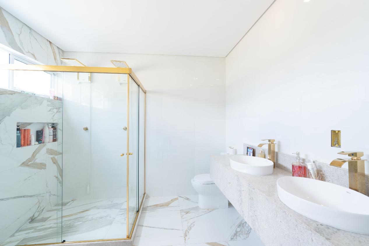 Suíte Master com closet, espaço para instalação de hidromassagem, duas duchas, pia com duas cubas